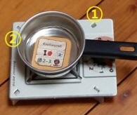 빨강 조미료 1개 검정 조미료 1개 / 2~3의 온도가 적당하고, 완성했을 경우 승점 2점을 준다)